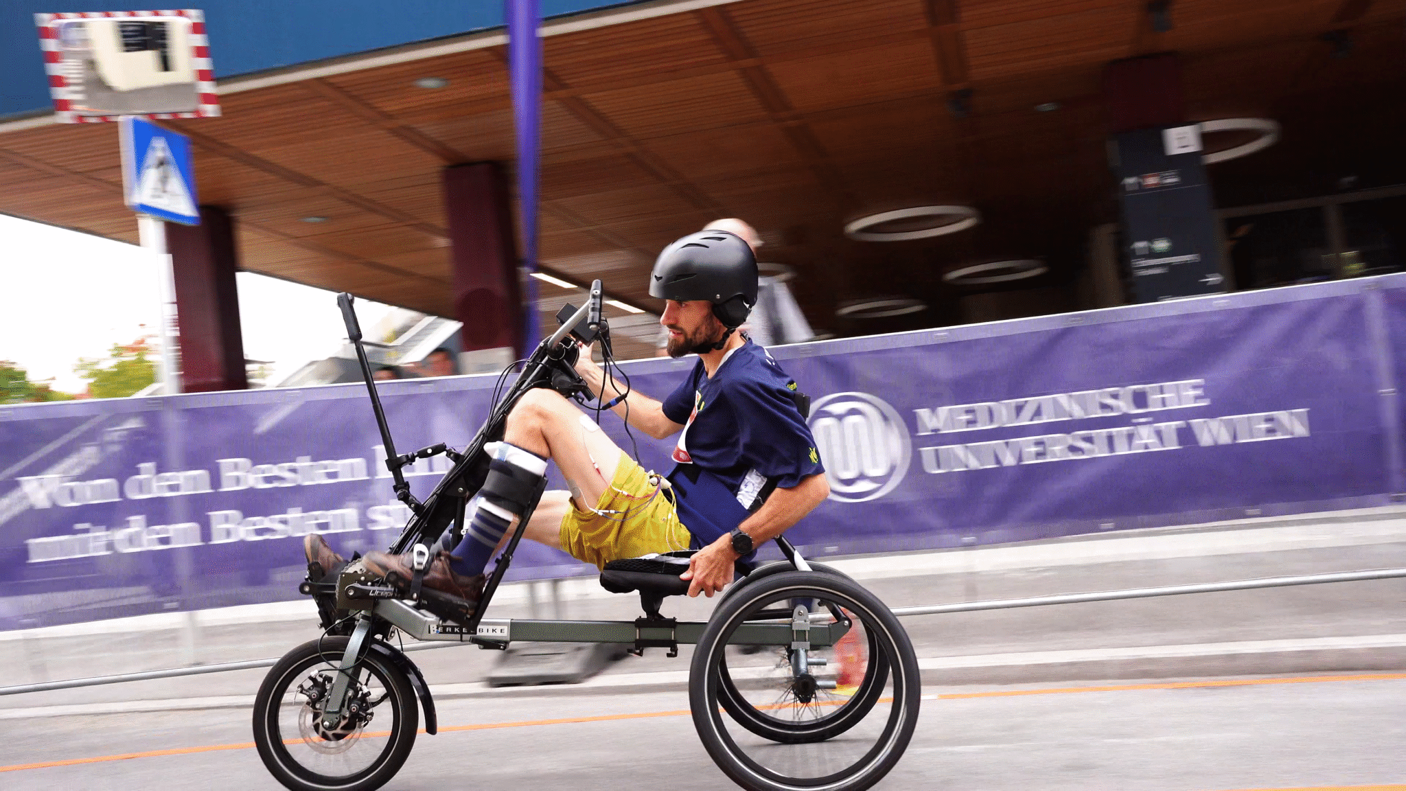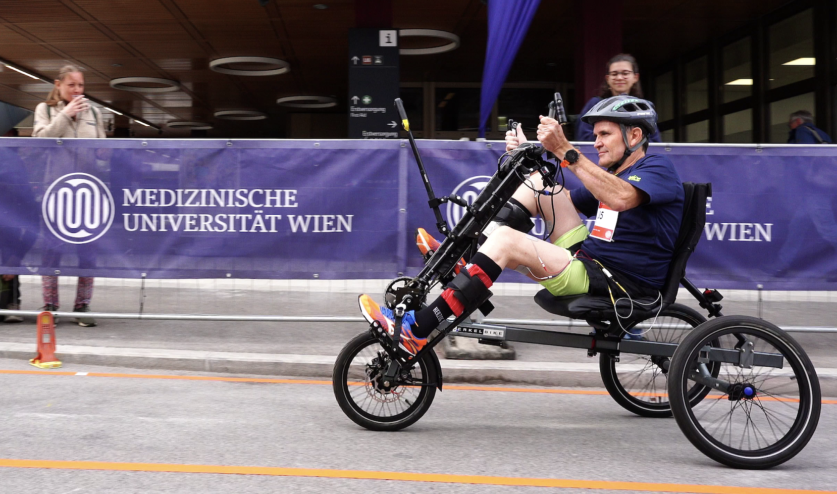 In the last year, we worked closely with both athletes in the VU lab twice a week, sometimes up to five hours. Peter van Burk’s approach was focused on keeping his heart rate high and combining arm and leg exercise. That approach seems to have boosted his blood flow and performance. Peter van Egdom’s program looked a bit different. For him, the focus was getting used to the resistance and dynamics of riding outside – while only training indoors. His progress from starting to train his legs again in November 2024, starting with just a few seconds of cycling until the muscles fatigued, to his first biking sessions outside in May 2025 –  and now finishing 400 meters in just over four minutes. From those first short efforts, to racing full laps in Vienna – his progress itself is something we are all really proud of!